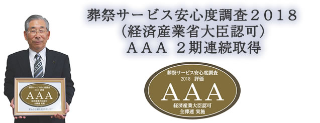葬祭サービス安心度調査2018 AAA 2期連続取得