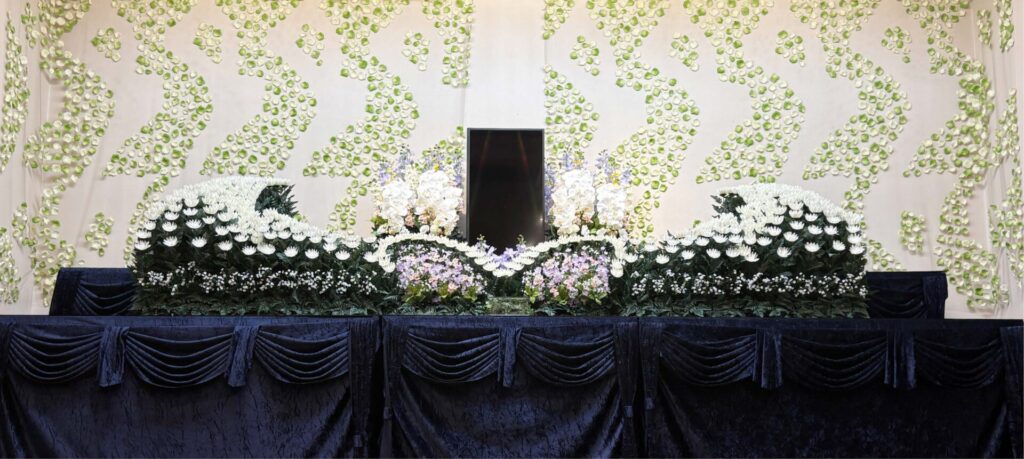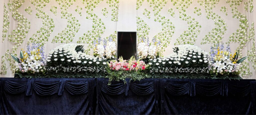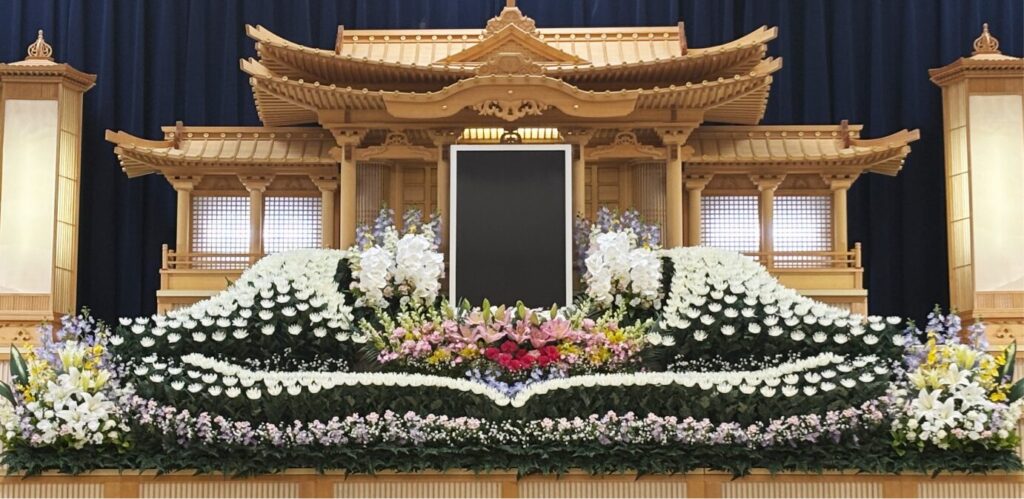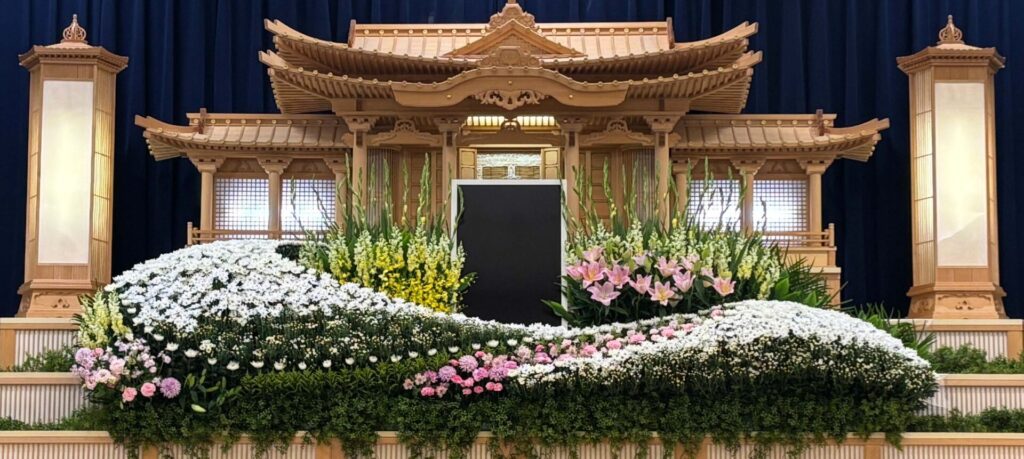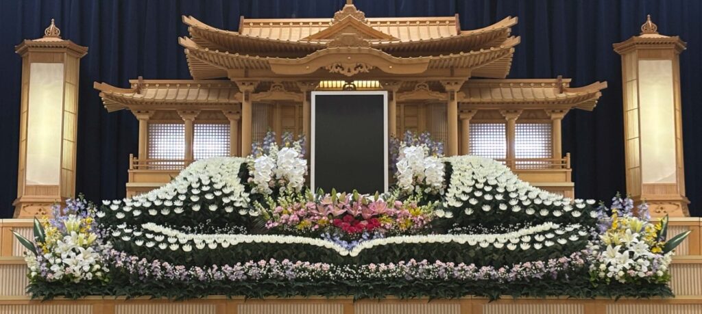 すべて生花で制作し、故人様への想いを込めた、華やかで香り豊かな生花による伝統的で格調高い設えです。