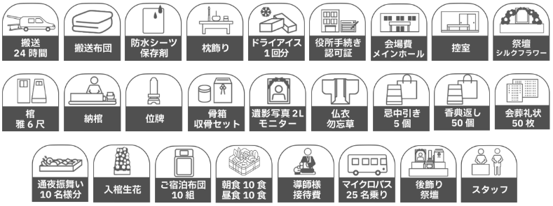 ※お寺様のお布施、院号料、足袋料、有料新聞広告などは上記に含まれておりません。